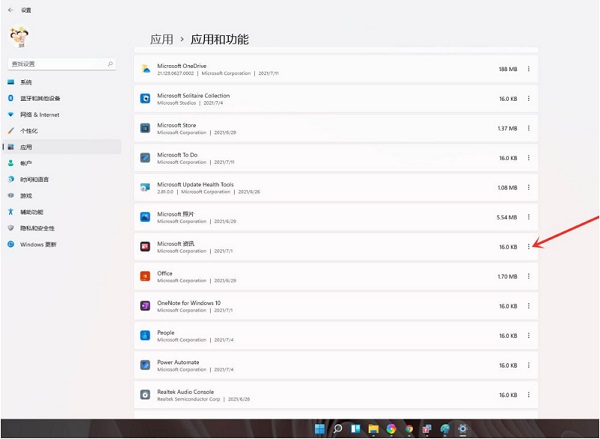3、进入【应用和功能】界面,在应用列表中找到要卸载的应用,点击右侧的【┇】。