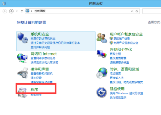 2、接着打开控制面板之后,大家选择程序,如下图示。