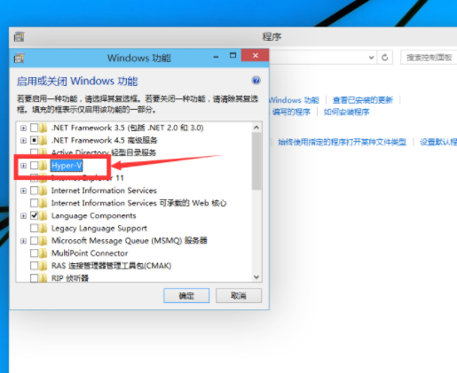 4、接着在windows功能下面大家找到Hyper-V,勾选上。点击“确定”即可。