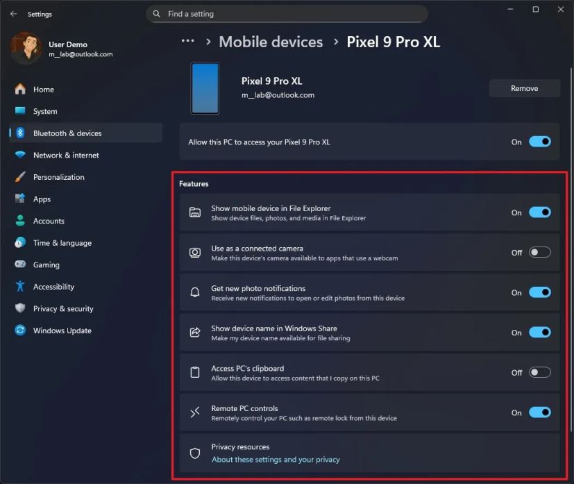 从 KB5070311 更新开始,微软在“移动设备”页面中加入了连接移动设备的选项。
