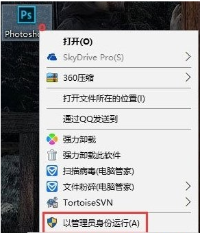1、右击photoshop这个软件,选择以管理员身份运行。