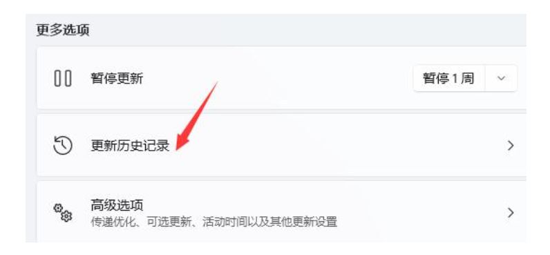 2、然后点击右侧图示的“更新历史记录”。