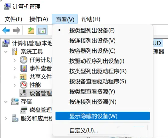 1、桌面右键点击【此电脑】,在打开的菜单项中,选择【管理】。计算机管理窗口,左侧点击【设备管理器】,接着顶部点击【查看】,打开的下拉项中,选择【显示隐藏的设备】。