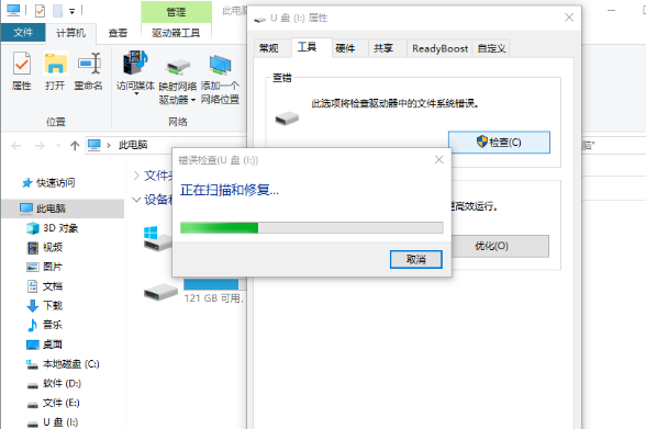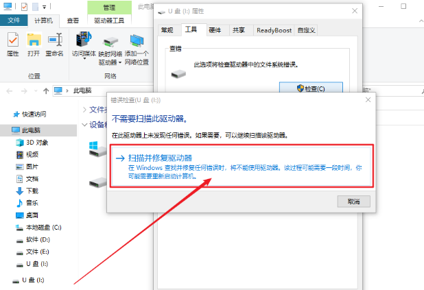 方法二:检查工具扫描并修复驱动器