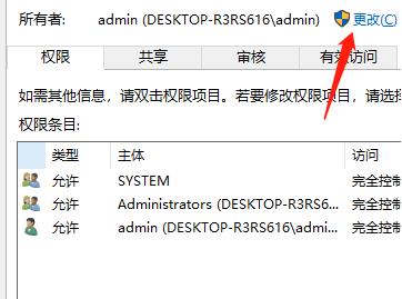 4、接着我们就打开文件夹的高级安全设置窗口,点击右上角的更改按钮。