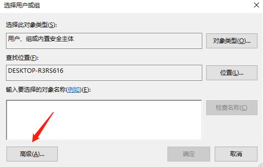 5、打开选择用户或组窗口,点击左下角的高级按钮。