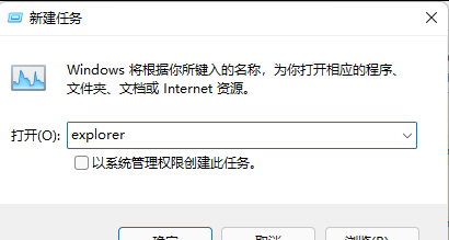 5、新建任务窗口,输入【explorer】命令,按【确定或回车键】,就可以重新启动Windows 网络资源管理器。