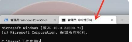 3、这样就能开启【管理员:Windows PowerShell】,Win11中,还新增加了多标签作用,可以点击窗口里的【往下小箭头】;