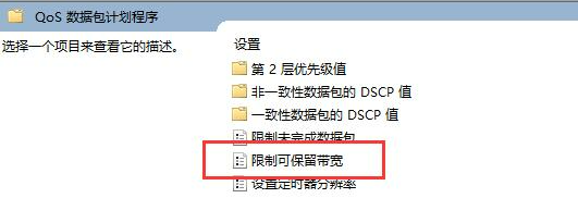 5、双击打开右侧“限制可保留带宽”策略。
