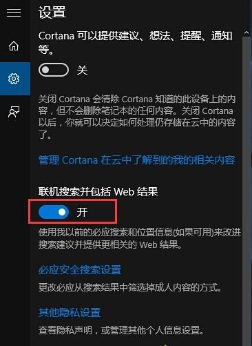 Windows10系统关闭搜索时的网页内容提示方法