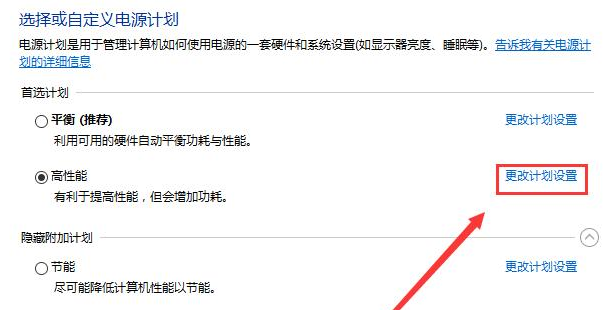 3、然后在你的首选计划中选择的那一项右边选择【更改计划设置】。