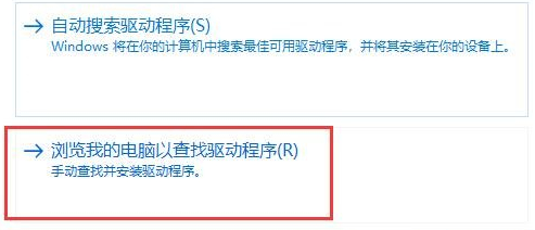 5、打开对话框后,直接点击【浏览我的电脑以查找驱动程序(手动查找并安装驱动程序)】。