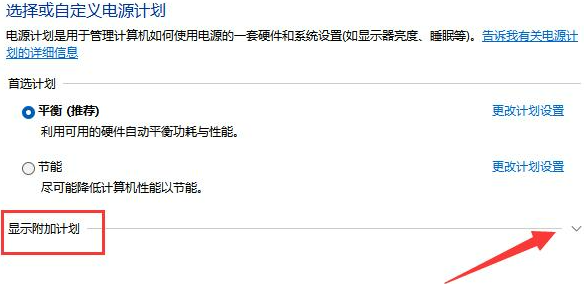 5、进入后我们就可以看到几种电源模式,然后在其中就可以修改电源模式了,可以选择平衡、节能模式或者展开隐藏附加计划,选择高性能模式。