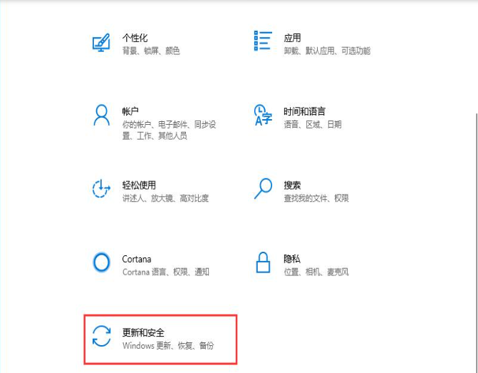 2、在打开的“windows设置”中,点击“更新和安全”。