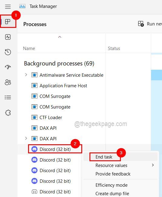 第 8 步:对当前在后台运行的所有别的 Discord 进程实行同样操作。