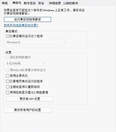 5、 前往兼容性标签页,在设置部分,勾选替代高DPEI缩放行为选框。