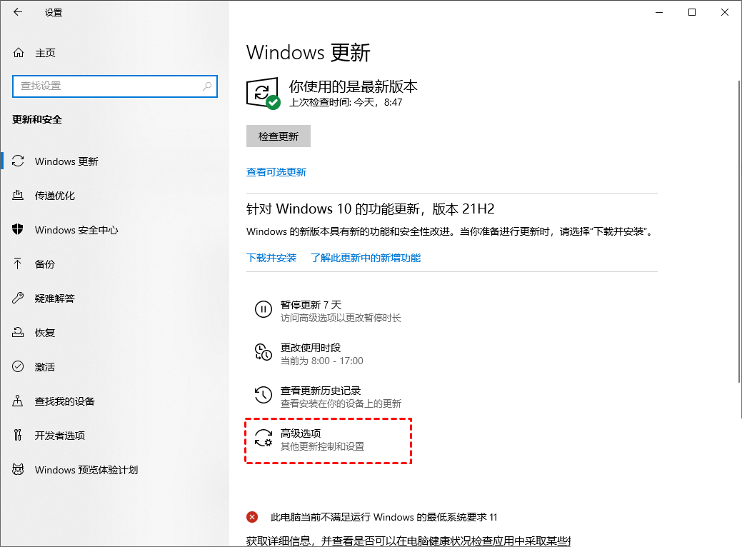留意:Win10自动升级关闭后,系统长时间不升级当你再度试着将系统更新到最新版本系统,可能会致使系统出差错。若您担忧系统出差错,最好提前对系统备份数据。