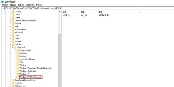 3、右键点击Microsoft注册表项,新建项并把它重命名为“WindowsINKWorkSpace”。