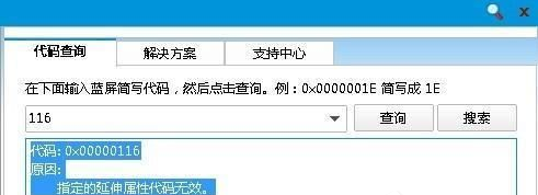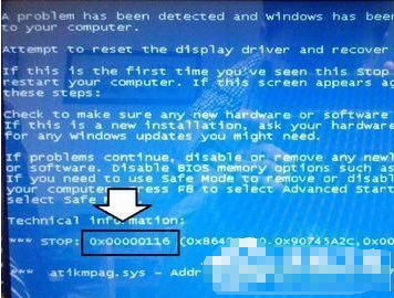 3、应用蓝屏查询工具,输入116代码能够看见故障的原因: