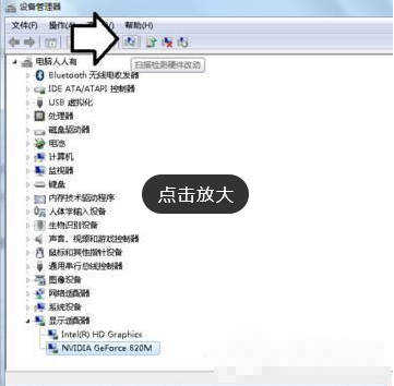 7、随后,再点一下工具栏上的扫描按键,寻找电脑显卡机器设备,维持连接网络,自动升级配对的电脑显卡驱动程序就可以。