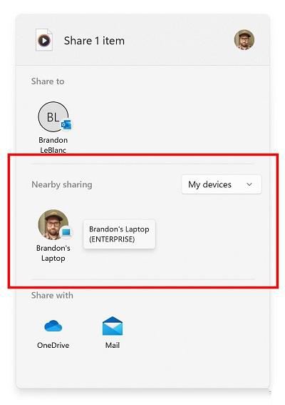 您现在可以通过内置的 Windows 共享窗口发现并共享到更多设备附近的共享。