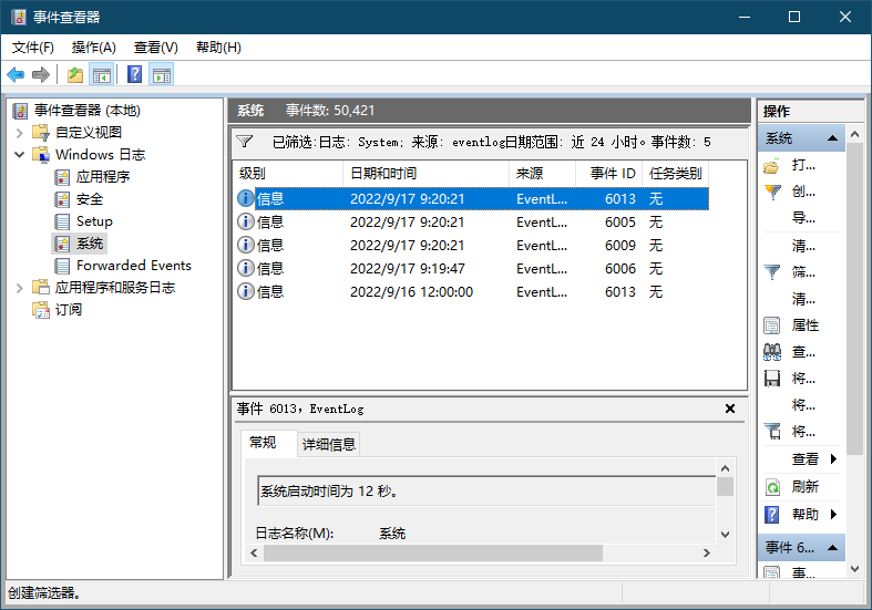 5、找到最近的eventlog日志信息,查看是不是最近的电脑重启的日期和时间。