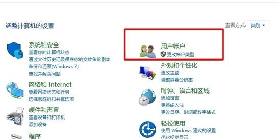 3、打开控制面板,因为我们需要设置的是开机密码和用户名,那么他们属于 用户账户,我找到用户账户选项 ,用户账户选项下只有一个选项,点击打开 更改账户类型。