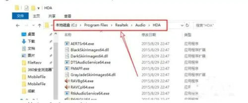 3、依次打开进入“program files>Realtek>audio>HDA”;
