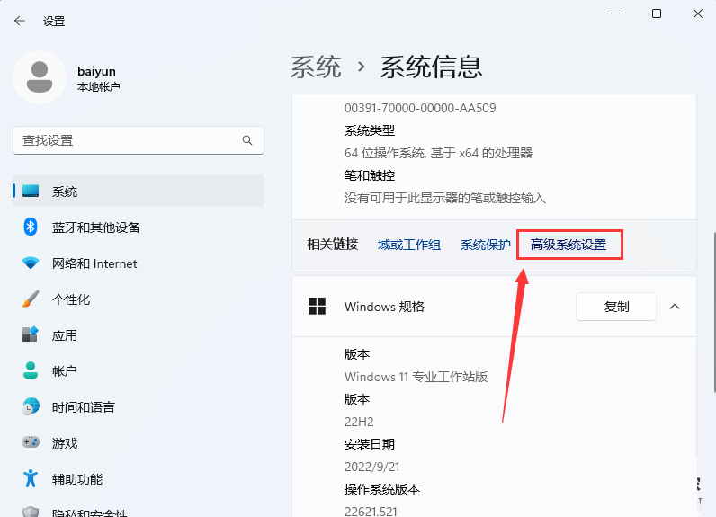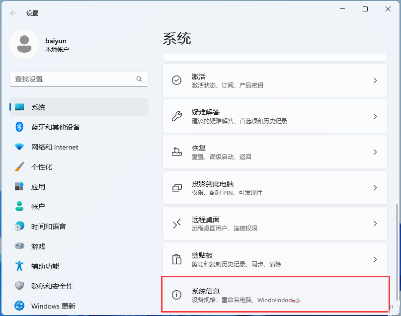 2、设置窗口,右侧点击【系统信息(设备规格,重命名电脑、Windows 规格)】。
