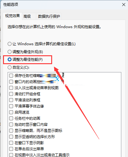 5、性能选项窗口,点击【调整为最佳性能】,再点击【确定】。