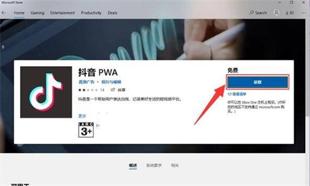 3、接下来在对应的安卓应用详情界面中,点击“获取”按钮。