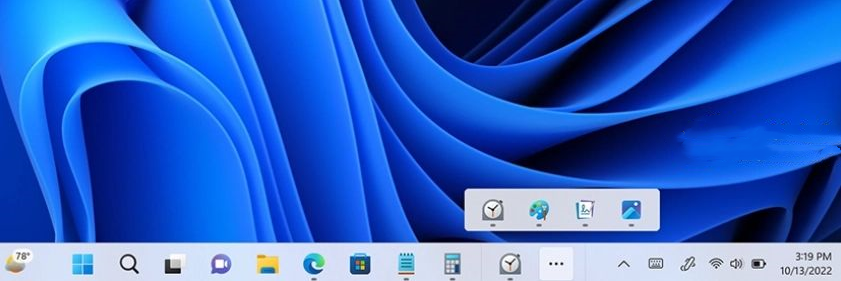 任务栏获得了两项迫切需要的增强功能。首先,如果用户想在任务栏上添加比空间所允许的更多的应用程序选项,任务栏会提供一个溢出菜单的入口,允许用户在一个空间中查看所有溢出的应用程序。