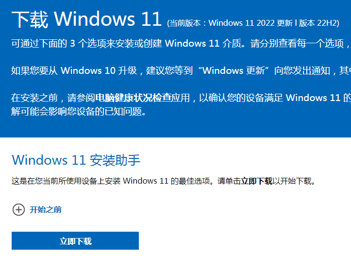 升级win11 22h2版本方法二:通过 Windows 11 安装助手来升级