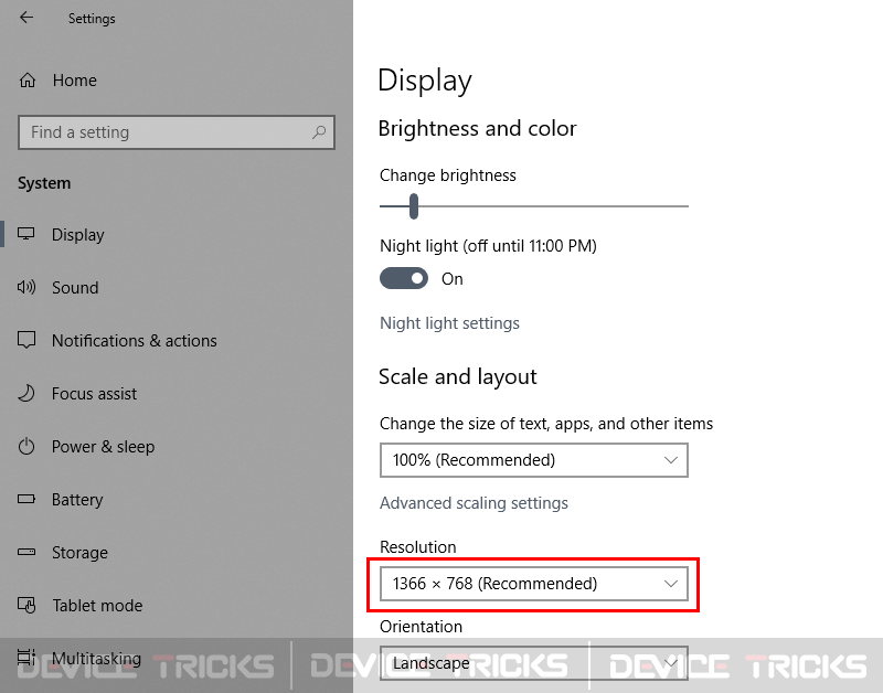 现在移至“分辨率”部分,单击下拉箭头键以选择推荐的分辨率。