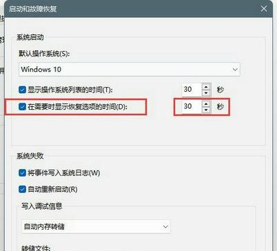 6、进入设置功能后,将在需要显示恢复选项的时间勾选好,再将右边的时间设置好就可以按确定按钮了。