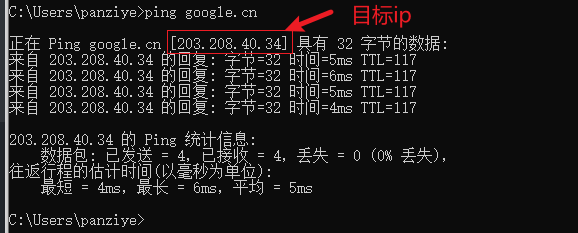 比如我这里的目标ip就是203.208.40.34,记下自己的目标ip,后面需要配置使用。如果后面使用该ip配置后还是无效,可以使用下面的几个ip,大概率可以解决该问题: