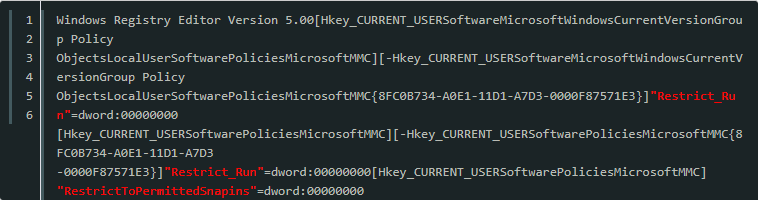 4、然后将RestrictToPermittedSnapins的值设置为0。