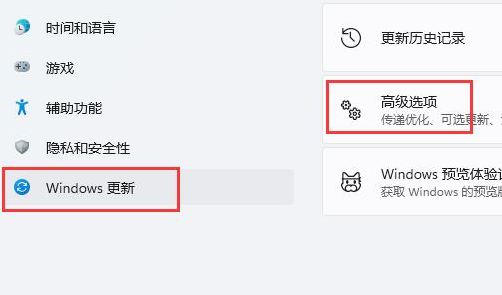 4、在设置中找到“Windows更新”,点击右侧的“高级选项”。