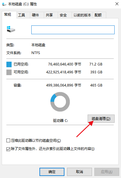 2、在弹出的属性窗口中,点击“磁盘清理”按钮。