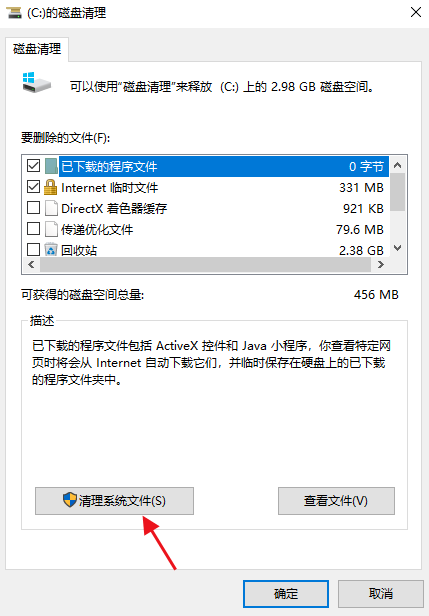 3、在弹出的磁盘清理窗口中(会有几秒中的“正在计算”窗口),点击“清理系统文件”按钮。