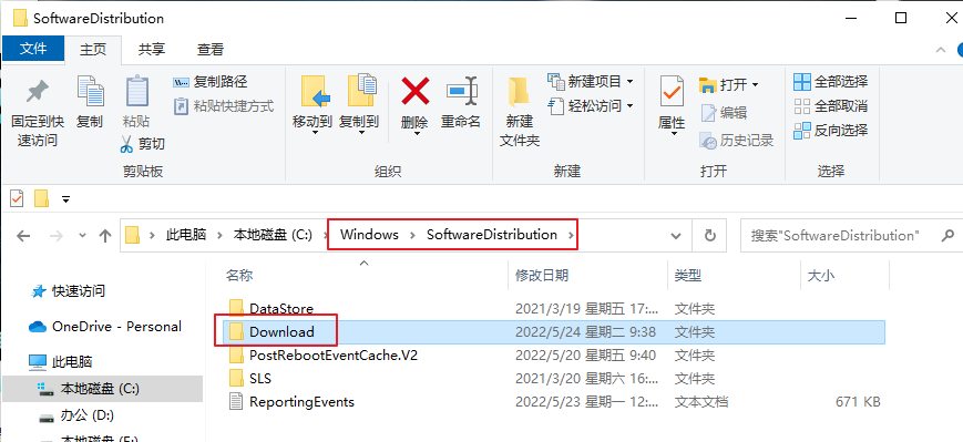 2、随后先后点开【Windows】-【SoftwareDistribution】-【Download】。