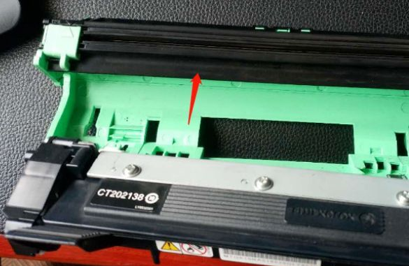 5、取出墨盒后,检查鼓架上面的鼓芯,看鼓芯是否有刮伤,如果有刮伤,需要一起更换掉,不然问题不能完全解决。