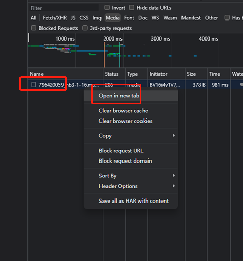 2、刷新后,可以看到有个视频文件地址,右击新窗口打开。