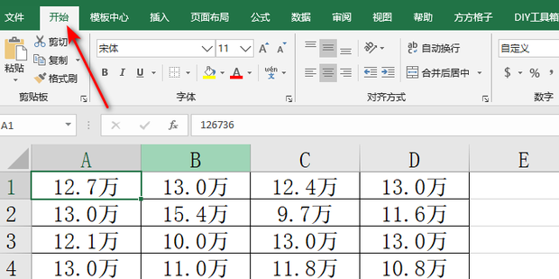 打开一个Excel文件后可以看到上方的工具栏被隐藏了。