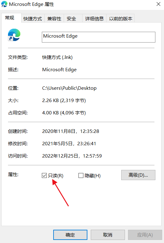 打开edge的属性界面,然后在“常规”选项里取消选中的“只读”,然后再“快捷方式”的“目标”里把exe“后面的网址去掉,加个空格就好了 然后点击确定就OK啦 之后打开就是Microsoft edge 的默认页面了。