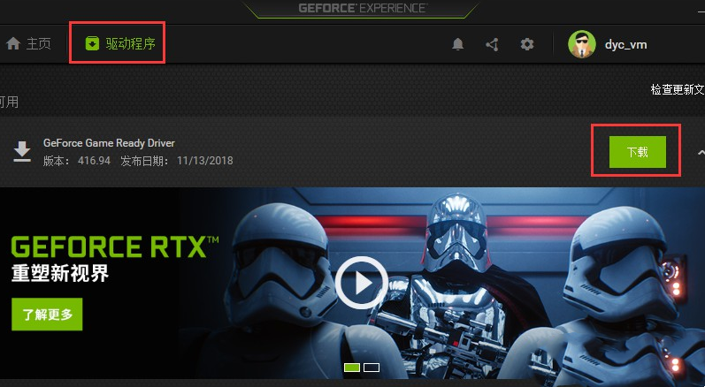 1、以英伟达显卡为例,打开GeForceExperience检测最新驱动。