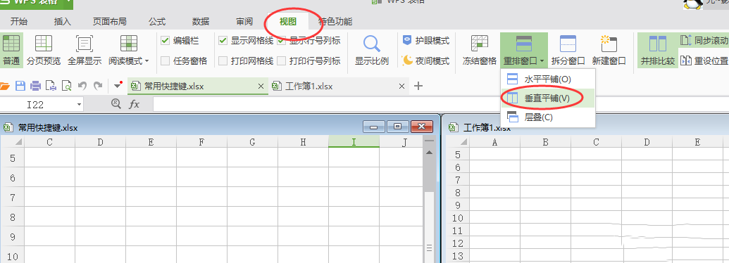 2、或选择“视图-重排窗口”,水平平铺或垂直平铺。