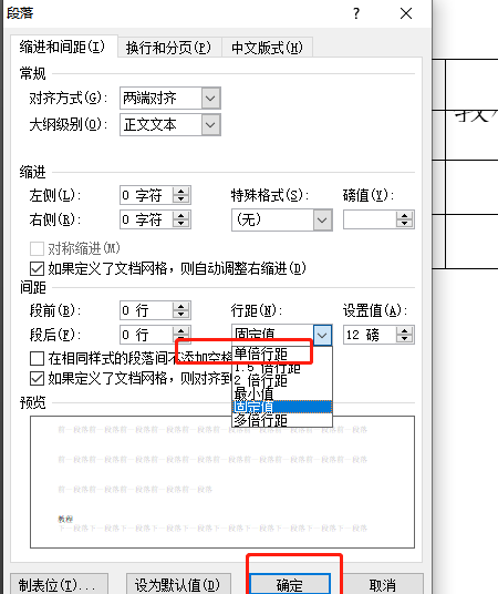 4、在拓展出来的选项卡中用户需要的单倍行距选项并按下确定按钮。