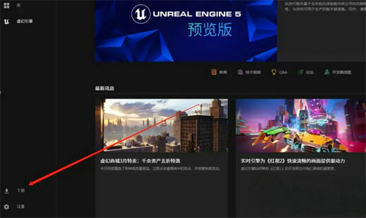 1、打开epic的客户端,如图所示,接着点击左下角的设置选项,进入到设置界面中。