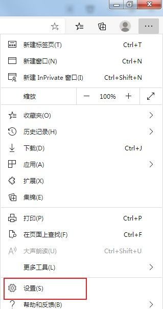 2、点击之后会在下方弹出Edge浏览器的菜单窗口,在窗口中点击打开“设置”页面。